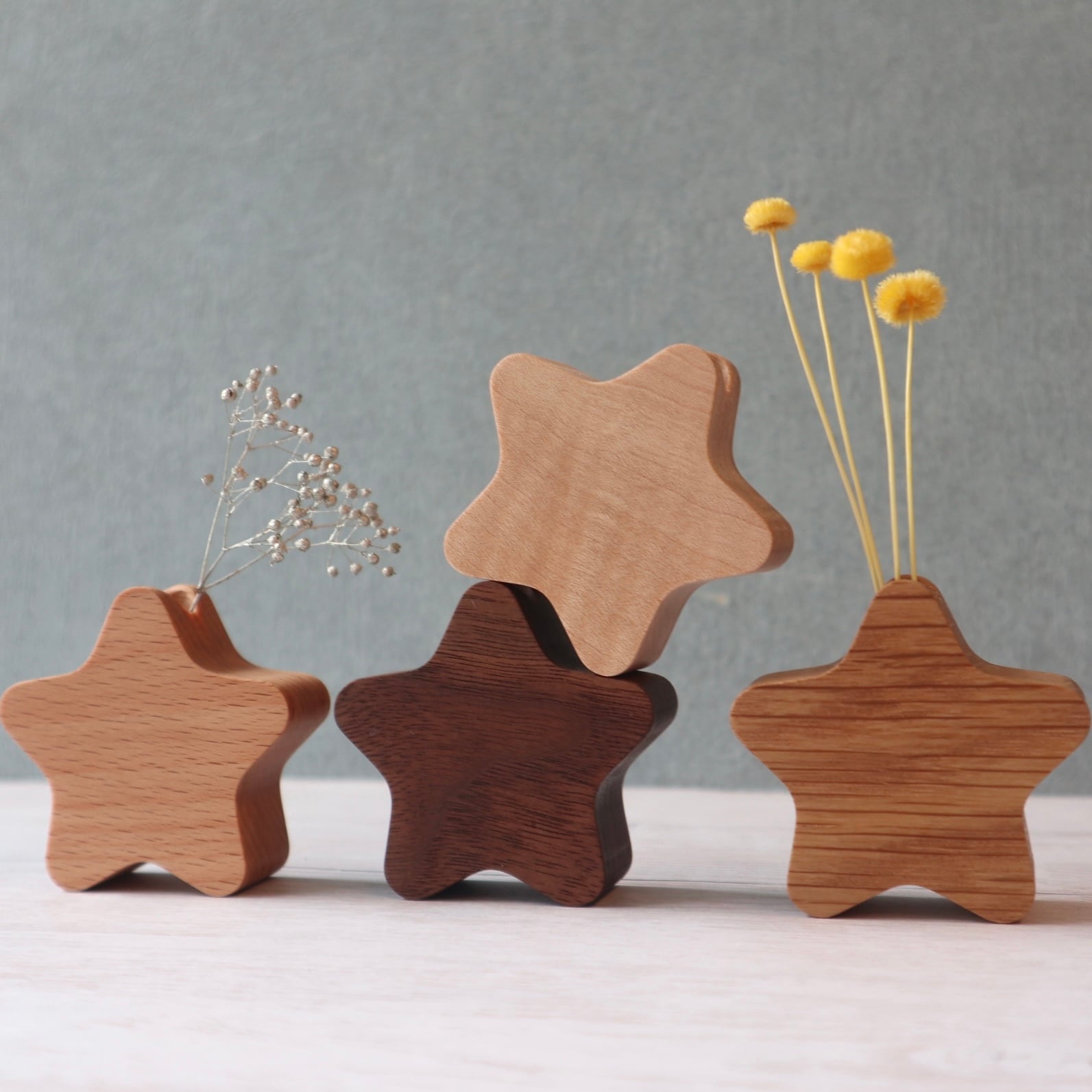 手のひらサイズ|木製お星さま花瓶